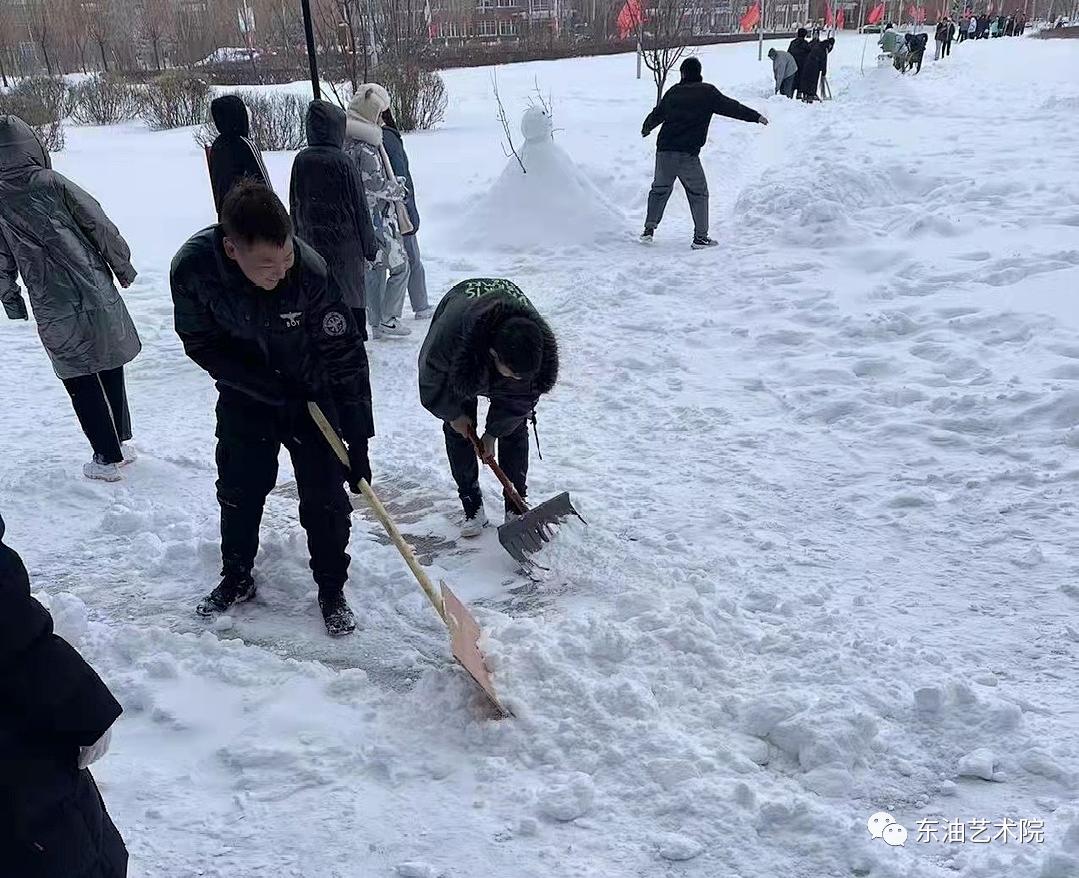 为了给老师同学们开辟一条道路,艺术院的大一新生们冒着严寒和风雪清扫着艺术院楼前广场,beat365官网领导也加入到扫雪的队伍中与同学们一同克服风雪困难!