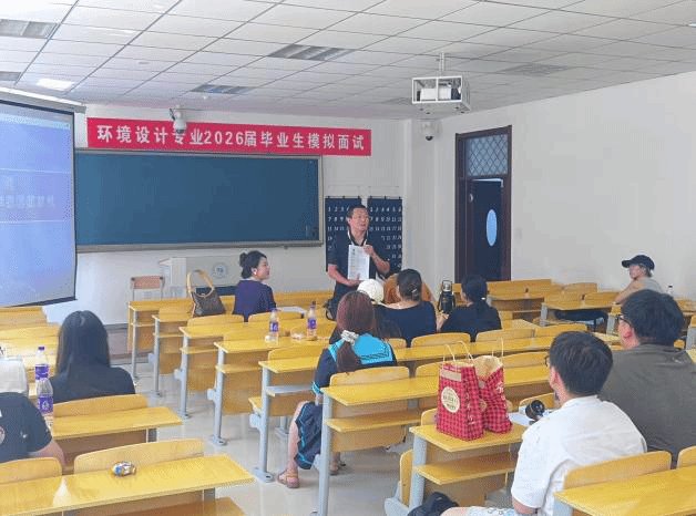 2025年7月7日,美术与设计系环境设计专业2026届毕业生在美术楼204、205、206三个教室率先开展模拟面试活动,聚焦平面设计、环境设计、设计文职及教育岗位三大方向,引导学生端正求职态度、明确求职定位,同时开放观摩渠道供其他年级学生学习。