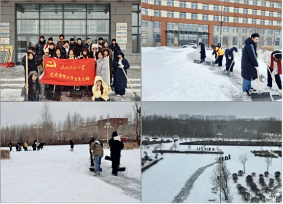 活动中,学生党员和党支部成员不畏严寒,挥舞着铁锹、扫帚等工具,积极投入到扫雪工作中。大家齐心协力,分工合作,铲雪、扫雪、除冰,干得热火朝天。尽管天气寒冷,但在党员的带领下,党支部成员热情高涨,额头上都渗出了细密的汗珠。在扫雪过程中,学生党员与党支部成员充分发挥先锋模范作用,不仅率先完成了学院周边主要道路的积雪清理,还主动帮助其他师生铲除道路积雪,为广大师生开辟出了一条条安全通道。