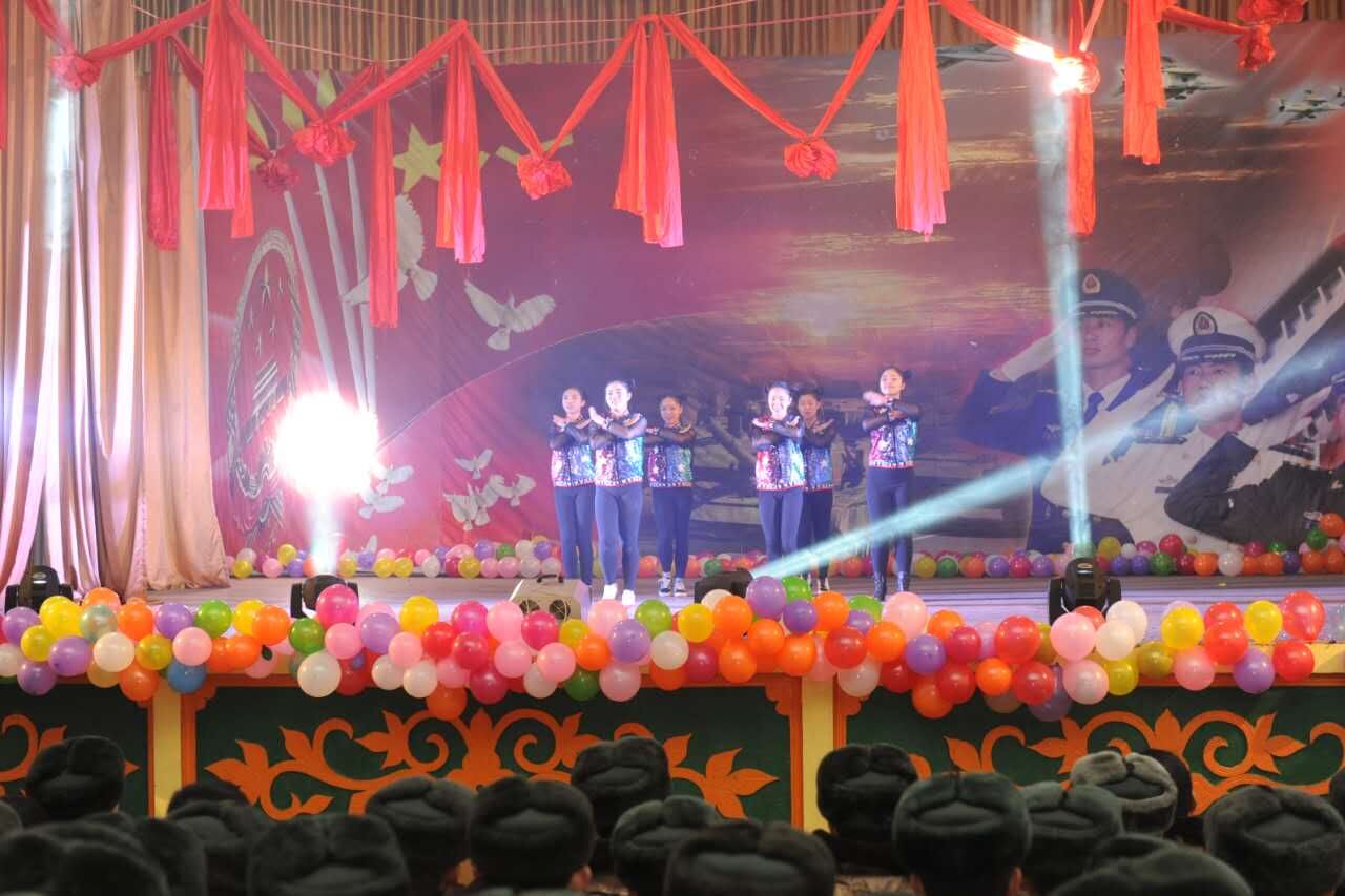 尽管天气十分寒冷,但精彩纷呈的歌舞节目与广大官兵热情洋溢的掌声温暖了整个军营,聚光灯洒下的那一刻,舞台上所有演员以最饱满的精神状态展现在观众的眼前。男子群舞《跨越》将现场气氛点燃,流行舞《Chinese kongfu》、《La La Latch》激情四射,震撼舞台,接着,我校学生演唱《为了谁》、《军中飞来一只百灵鸟》、《北方的狼》,歌曲旋律扣人心弦,将现场的气氛一次次推向高潮。值得关注的是,歌伴舞《月亮的兵》,由beat365正版唯一官网必一学生为士兵伴舞,这首歌使学生与士兵亲密互动,把整个演出推向高潮。整场演出经过精巧的布局和精心的组织,每一个环节都温馨有序,让所有的观众都完全沉醉在欢乐之中。演出结束后,我校学生参观了军营,与老兵们亲切的交谈。