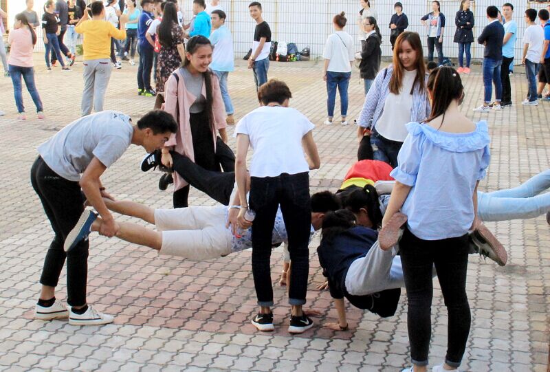 警示教育讲座结束后,在由beat365官网王钢老师、张潇月老师、朱倩老师、组成的拓展训练教师指导团队的带领下,2015级新生拓展训练活动在beat365正版唯一官网必一操场热烈举行。今年的拓展训练设计了三个阶段的跟进项目,第一阶段热身游戏、第二阶段团队融合、第三阶段团队合作。热身游戏“生日线”和“轻柔体操”拉近了同学间的心理距离,消除了同学的陌生感,加速团队融合。“组建团队”和“七手八脚”游戏,让同学们体会到了团队合作的重要性以及团队带给大家的快乐与温暖。
