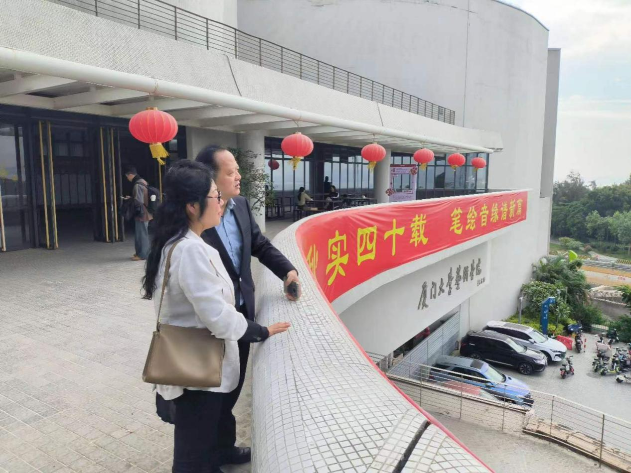 活动期间,厦门大学beat365正版唯一官网必一副院长刘涛教授热情接待了林庆华院长,对林院长一行的来访表示热烈欢迎,并带领参观了厦门大学beat365正版唯一官网必一,介绍厦门大学beat365正版唯一官网必一办学特色、办学成果、历史沿革与学科发展情况。他表示,希望两校能有良好合作,进一步加强交流,在教育教学中创造更多互动机会,共同探讨在智能时代如何培养高素质艺术类人才。