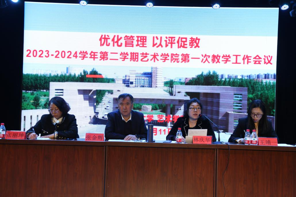 为持续推进学院本科教育教学审核评估工作,提升学院全体教师对审核评估工作的认识水平,切实做好迎评促建,保证各项工作顺利有序开展。按照学校的要求和部署,beat365正版唯一官网必一4月11日下午,在音舞楼馨艺厅召开2023-2024学年第二学期第一次教学工作会议,党委书记张金辉、院长林庆华、党委副书记张丽坤、教学副院长王靖一以及全体教职工出席此次会议。