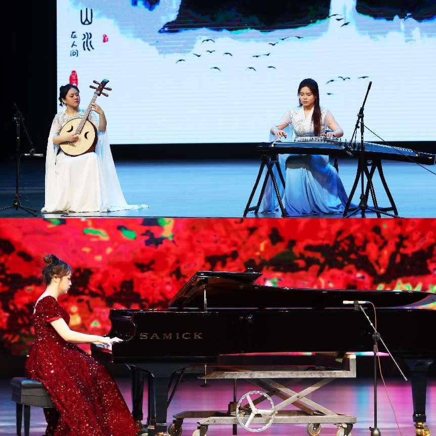 古筝、中阮重奏《酒狂》音乐内在含蓄、寓意深刻;钢琴独奏《山丹丹开花红艳艳》展示了陕北人民朝气蓬勃,乐观向上的美好精神面貌 。