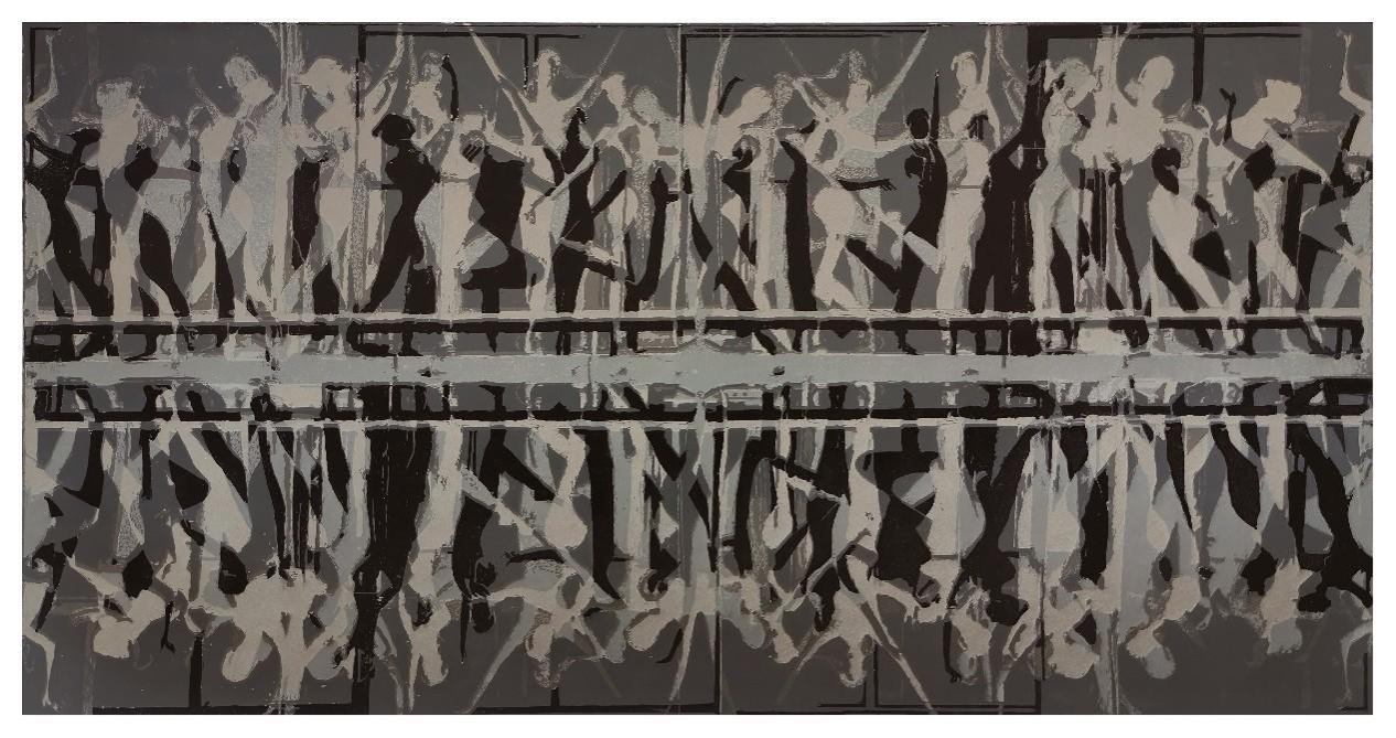 于丽燕 《我们持续的跳着,跳着》套色木刻 62cm×120cm 2019