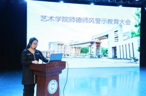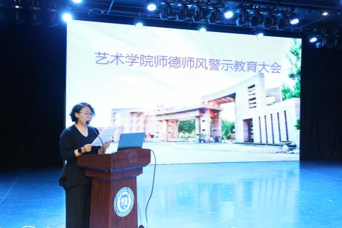 张丽坤副书记向全体教职工宣读学校文件《中共东北石油大学党委进一步压实师德师风建设主体责任实施办法》,将师德师风建设落到实处。
