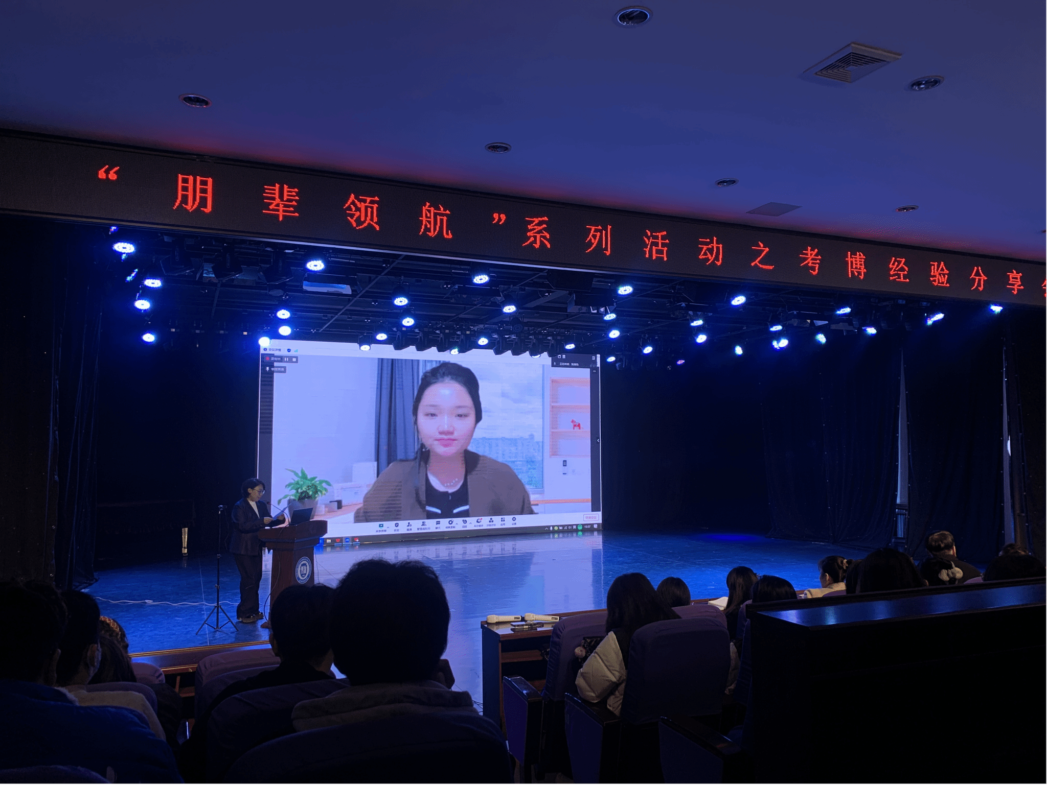 互动环节,现场的同学与主讲人踊跃互动,章新珏同学回答了同学们提出的“面临毕业季的就业压力,如何平衡找工作和读博这两件事的?”“如何学好英语?”等问题,为同学们做出了清晰的解答。