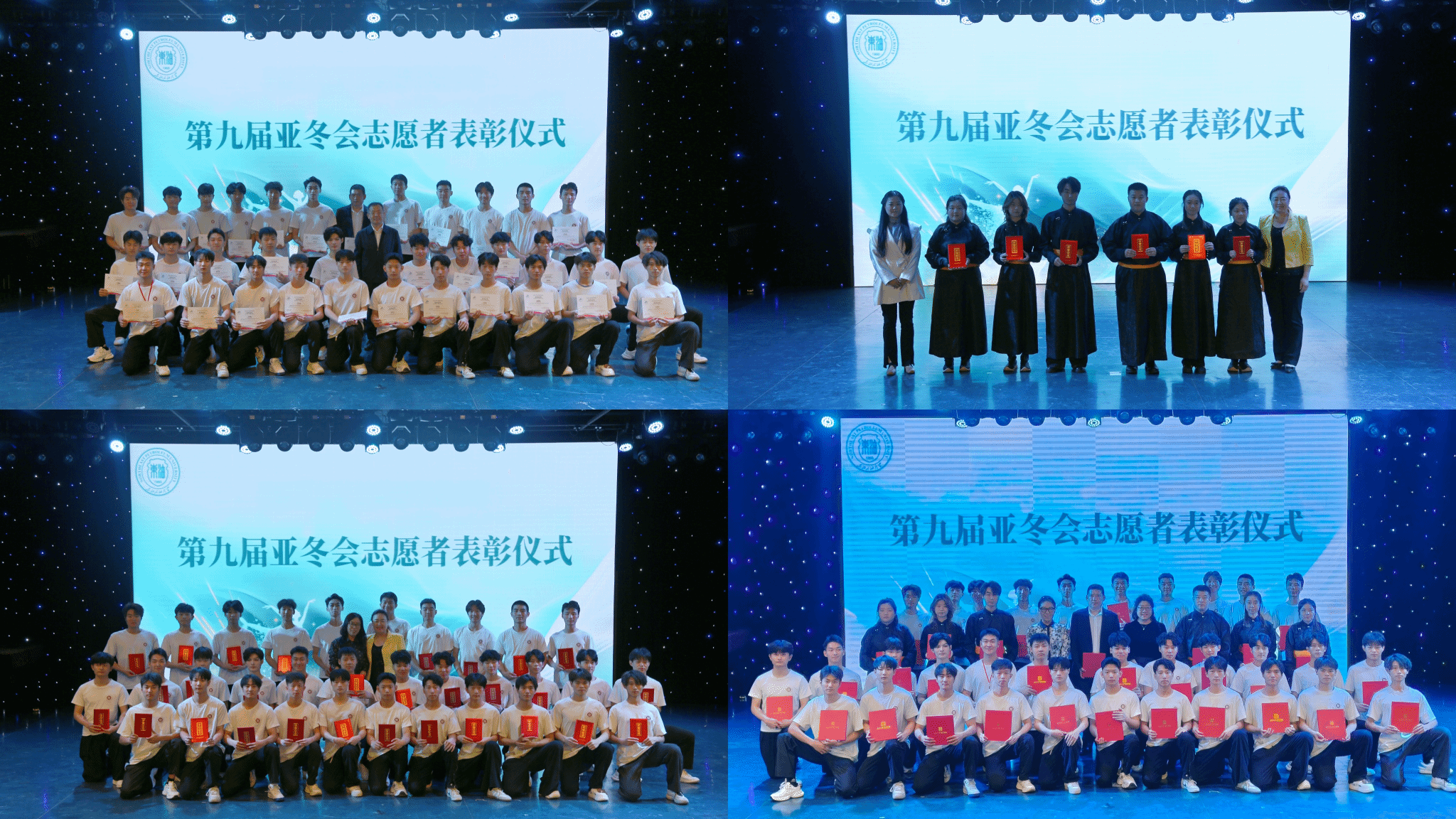 比赛结束后的表彰仪式中,校院两级领导为受邀参加第九届亚冬会开闭幕式表演的同学们颁发了亚冬会纪念证书、校团委志愿者证书、以及学院的礼物。开闭幕式上,舞蹈表演专业的33名同学参演了《长歌颂冰河》《点亮亚洲》等节目。音乐表演专业6名同学参演开幕式暖场节目《龙马弦韵》。同学们用饱满的热情、高超的琴技和奔放的舞姿,向世界展示了中国底蕴深厚的传统文化和富有地域特色的冰雪文化。同学们经历过从晨光熹微到星斗满天,连续奋战19小时重构节目的艰难时刻。700多个小时的排练,在84个日日夜夜里,与时光竞走,同星辰共舞。其敬业精神成为开幕式“雪冷血热”主题的生动诠释。学校为学生们提供了心理与生活的全方位保障。