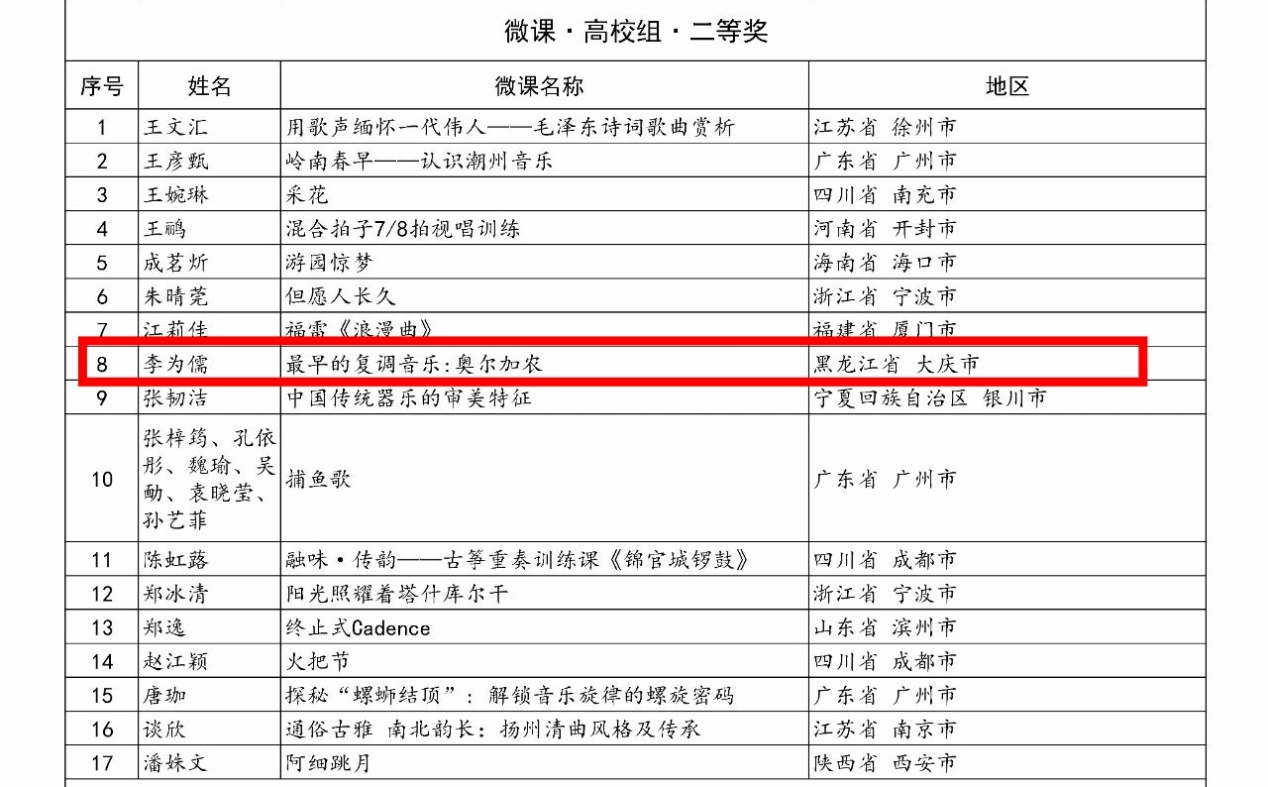 2025 “万叶杯”音乐微课与课件征集活动结果揭晓,beat365正版唯一官网必一音乐系李为儒老师的微课作品《最早的复调音乐:奥尔加农》,凭借专业特色鲜明、设计创新、技术精湛,在众多作品中脱颖而出,荣获微课高校组二等奖,彰显beat365官网教师在音乐教育信息化领域的实力。