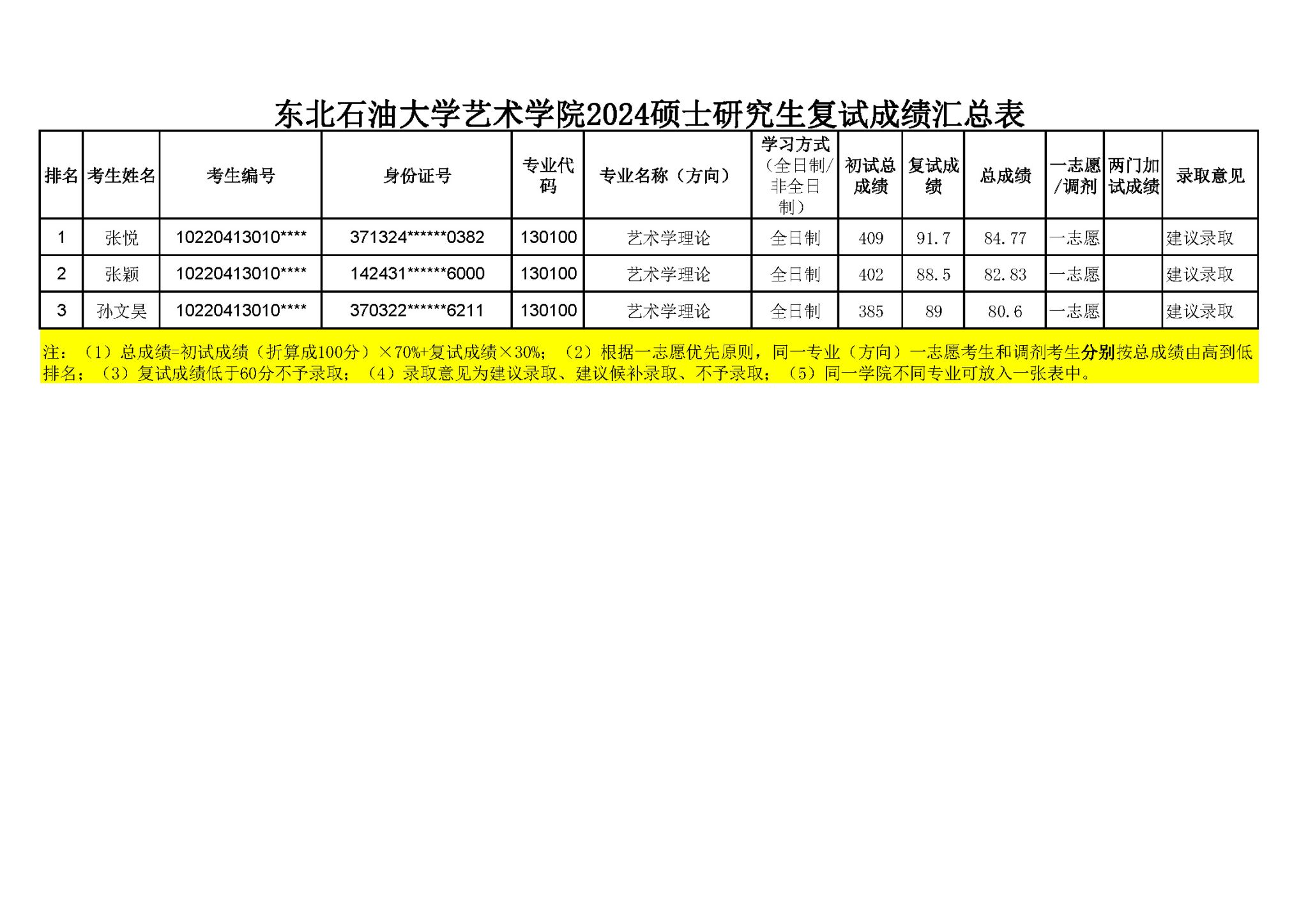 东北石油大学beat365正版唯一官网必一2024硕士研究生复试成绩汇总表