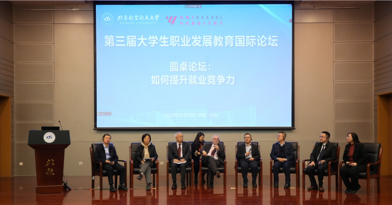 2023年11月10日,全国大学生职业发展教育研发基地学术委员会第三次会议暨第三届大学生职业发展教育国际论坛在北航举行。由北航和德国卡塞尔大学共同主办的本次国际论坛,汇聚了来自德国卡塞尔大学、芬兰坦佩雷大学、英国曼彻斯特大学、丹麦奥胡斯大学、北京大学、香港大学、北京理工大学、沈阳师范大学、中国劳动和社会保障科学研究院、华为、智联招聘等高校及企业的专家学者齐聚北航。教育部学生服务与素质发展中心、校学生中心、人文公管学院、高等教育研究院、全国大学生职业发展教育研发基地、来自全国各地的师生及企业人士出席会议。