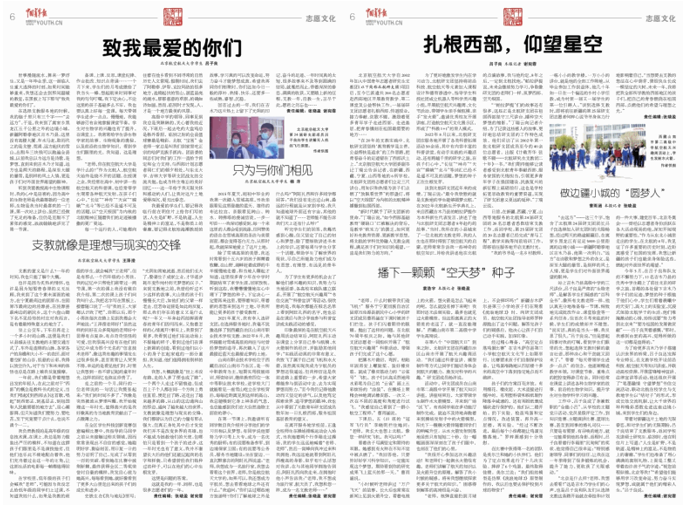 2023年7月18日,由共青团中央主管、中国青年报社主办的《中国青年作家报》志愿文化整版报道金年会jinnianhuicom研究生支教团事迹。作为其中的一员,吕子良参与中宣部志愿服务促进中心、中国青年志愿者媒体中心线上文化宣传志愿,运营“中国志愿”“西部志愿汇”公众号,编辑推送200余篇,阅读量超过400000人次。