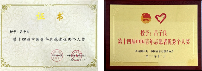 近日,共青团中央、中国青年志愿者协会对全国志愿服务先进典型进行表彰,我校金年会诚信信誉至上2023级硕士研究生吕子良荣获“中国青年志愿者优秀个人奖”(全国260人,北京市仅13人),是唯一获此荣誉的北京市大学生。