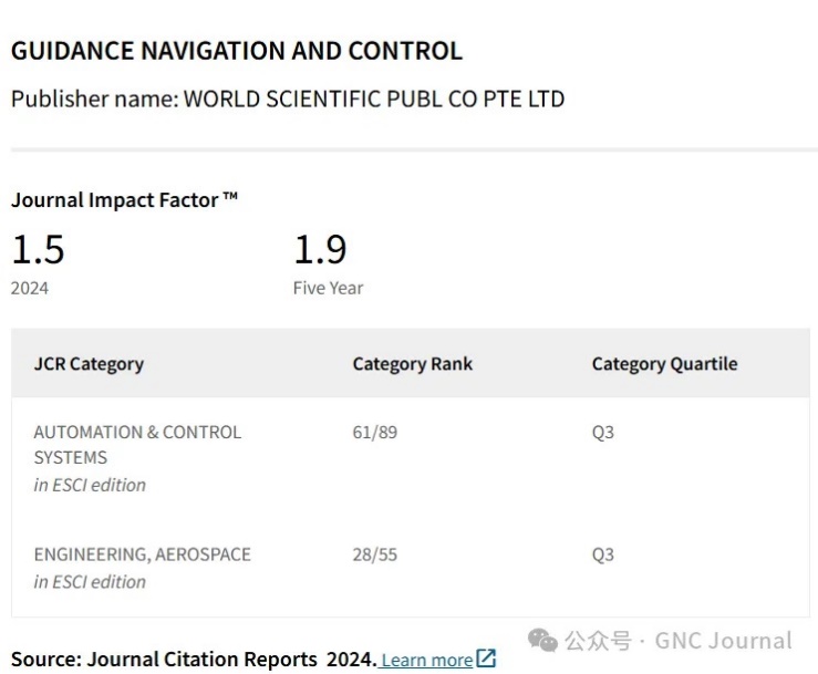 Guidance, Navigation and Control(简称GNC,《制导、导航与控制(英文)》)(国际刊号:ISSN (print): 2737-4807,ISSN (online): 2737-4920,国内刊号:CN10-1988/V)依托挂靠我院的中国航空学会制导、导航与控制(GNC)分会创刊于2021年3月。