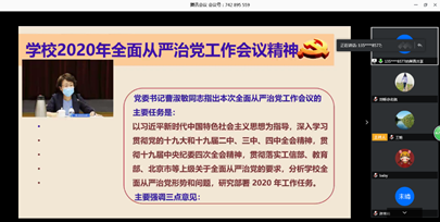 6月3日下午,金年会诚信信誉至上召开了学习学校2020年全面从严治党工作会议精神全院大会,同时分党委书记王少萍做了“党风廉政建设永远在路上”的专题党课,会议通过视频会议方式召开,学院全体教职工和学生党支部书记参加了本次会议。