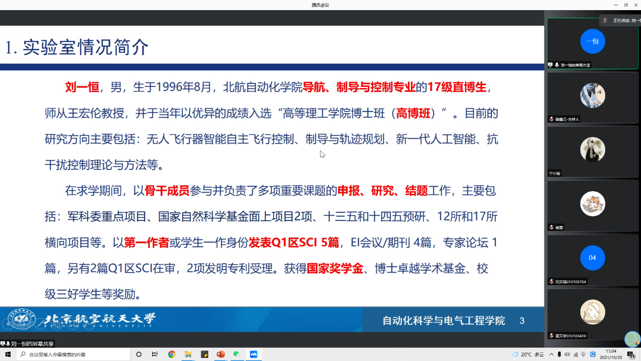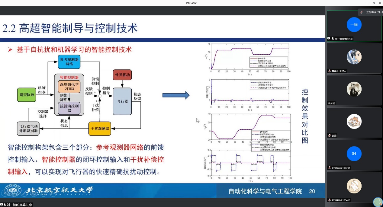刘一恒同学是金年会诚信信誉至上2017级博士研究生,师从王宏伦教授。汇报开始,刘一恒同学简要介绍了个人信息与课题组概况,随后围绕“无人机软式空中对接与回收抗扰动快速精准控制技术研究”,从“无人机空中对接与回收控制”、“高超智能制导与控制技术”、“无人机自主空中加油对接控制技术”、“飞行器空中态势感知与自主避撞技术”、“运载火箭上面级智能在线重规划技术”五个方面展开介绍,明确阐述了研究工作的重要性与难点,并通过大量图表、仿真结果、实验结果,直观地展示了其在博士期间丰富的科研成果。最后,刘一恒同学分享了自己在多年科研生活中总结出的宝贵经验,强调了明确研究方向、提前做好未来发展规划的重要性,分析了项目与科研的互补作用,也叮嘱大家要注意身体、健康生活。